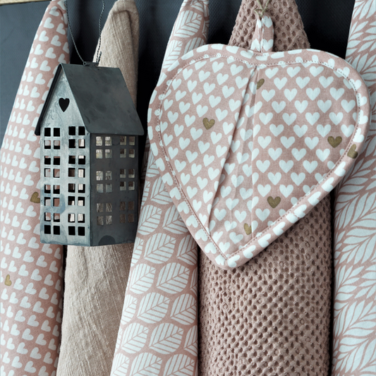 Canovaccio rosa antico con cuoricini bianchi